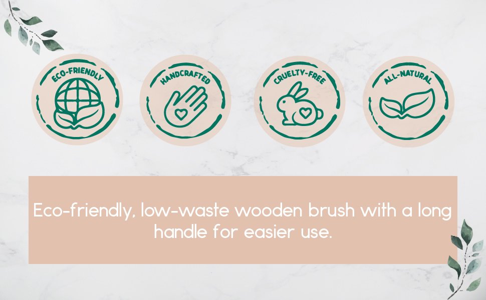 • Eco-friendly; low-waste wooden brush with a long handle for easier use.