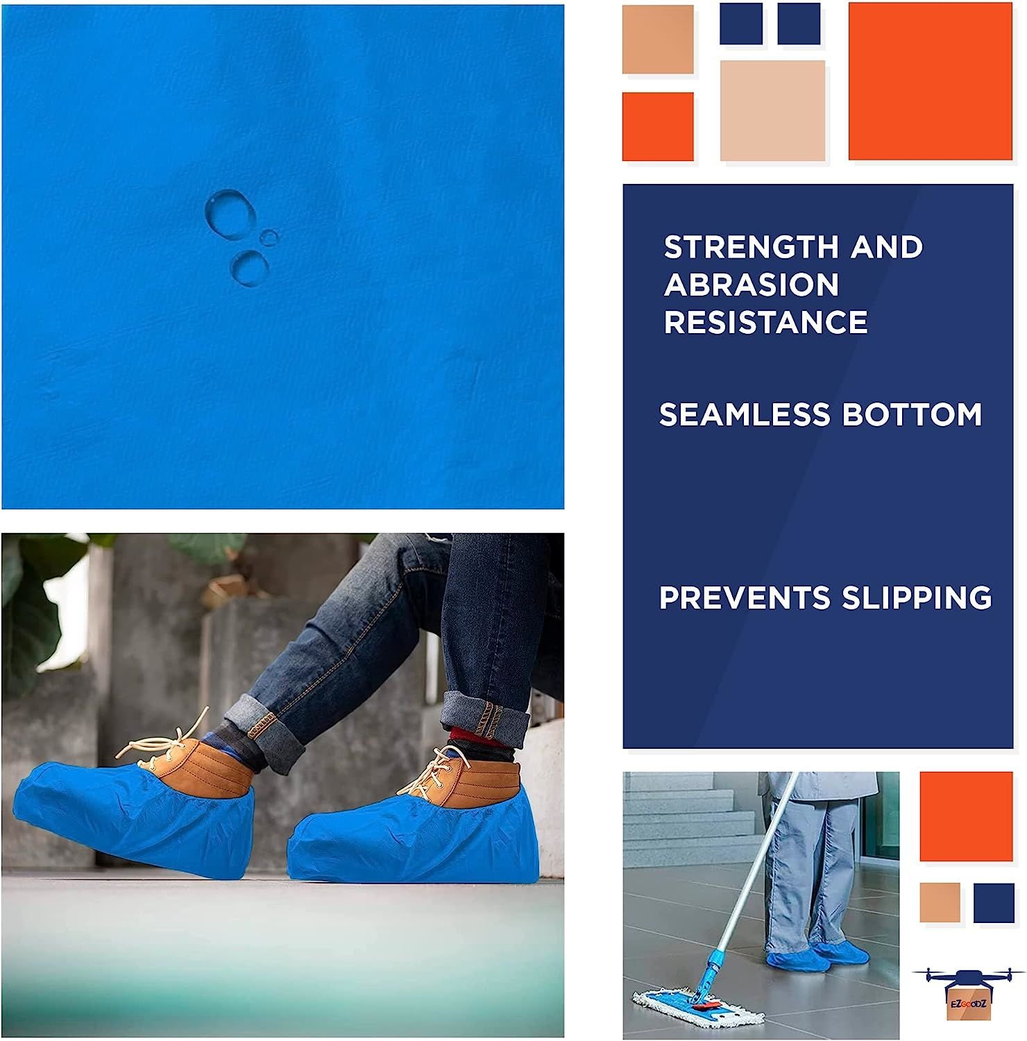 Home > Disposable Shoe Covers 16" x 6". Pack of 100 Blue Boot Covering. Polyethylene Shoe Booties. Waterproof Shoes Protectors. 50 Pairs of Thick Covers for