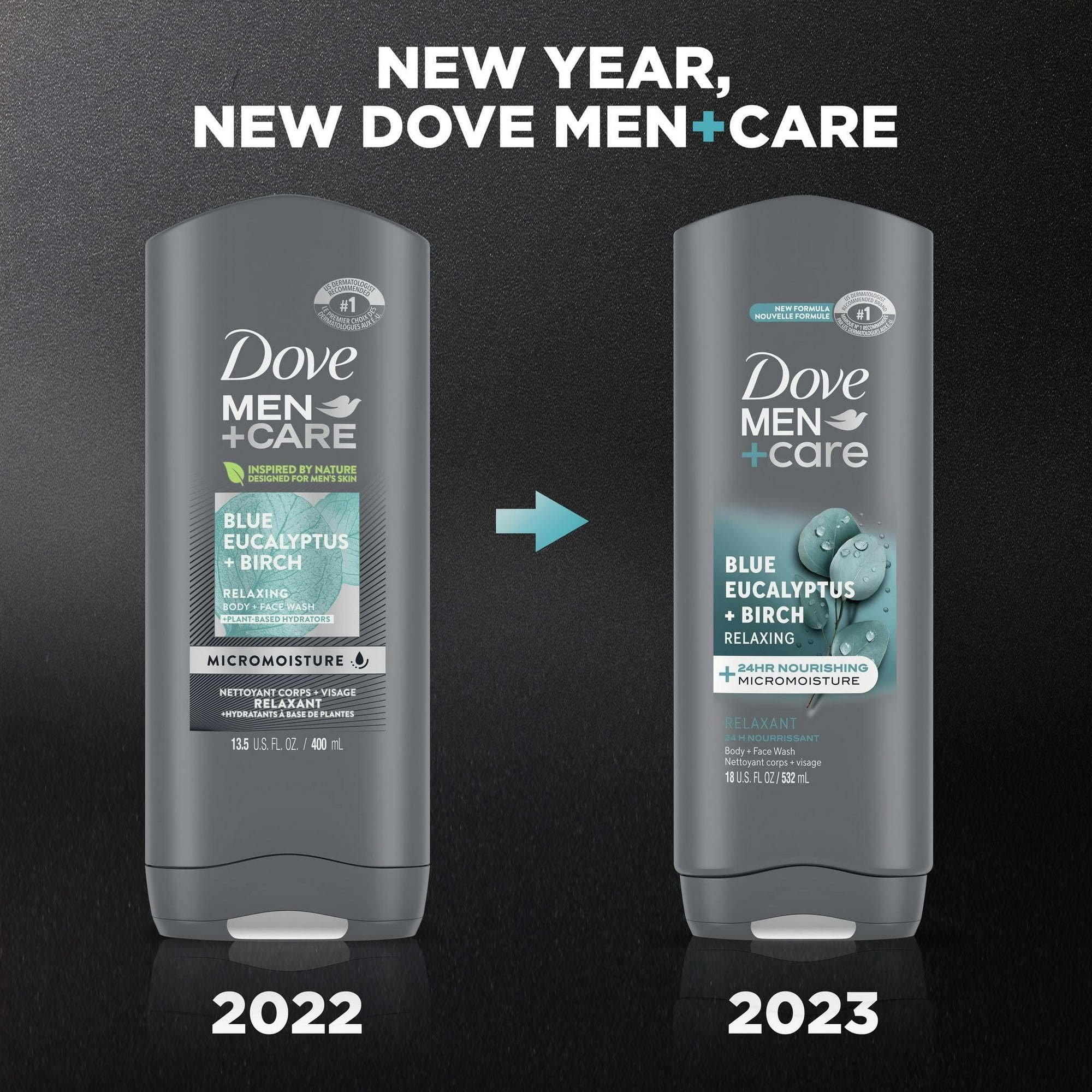 Dove Men+Care Relaxing Hydrating Face and Body Wash, Blue Eucalyptus and Birch, Men's skin is 25% thicker and contains higher levels of protein. That means more sweat, lower hydration levels, and easily irritated skin. So, forget about harsh soaps. Try Dove Men+Care Elements Blue EucalyptusBirch Body and Face Wash to your men's skin care and shower routine! Typical soap for men strips away oil and other essential skin components, leaving you with dry, flaky, and irritated skin. Dove Men+Care is a mild cleanser with plant-based moisturizers and skin-strengthening nutrients to help rebuild skin and skin proteins. Dove Men+Care Body and Face Wash is an easy-to-rinse, hydrating body wash that is clinically proven to fight dry skin better than a regular men's body soap or shower gel. It is also gentle enough to use as a face wash for men. This body wash is infused with the scent of natural eucalyptus to relax the senses. It's also just as effective for cleansing hands. For best use, squeeze Dove Men+Care Body and Face Wash onto your palm and rub your hands together to work the shower gel into a light foam to activate the Micro-Moisture Technology. Apply to your body and face. Rinse thoroughly. Dove Men+Care champions active fathers and the need for paid paternity leave. Find out more about their work in celebrating fatherhood and raising awareness around parental leave on the Dove Men+Care site. And as part of our commitment towards sustainability, each Dove Men+Care body and face wash bottle is recyclable and made with 100% recycled plastic and is PETA certified Cruelty Free.