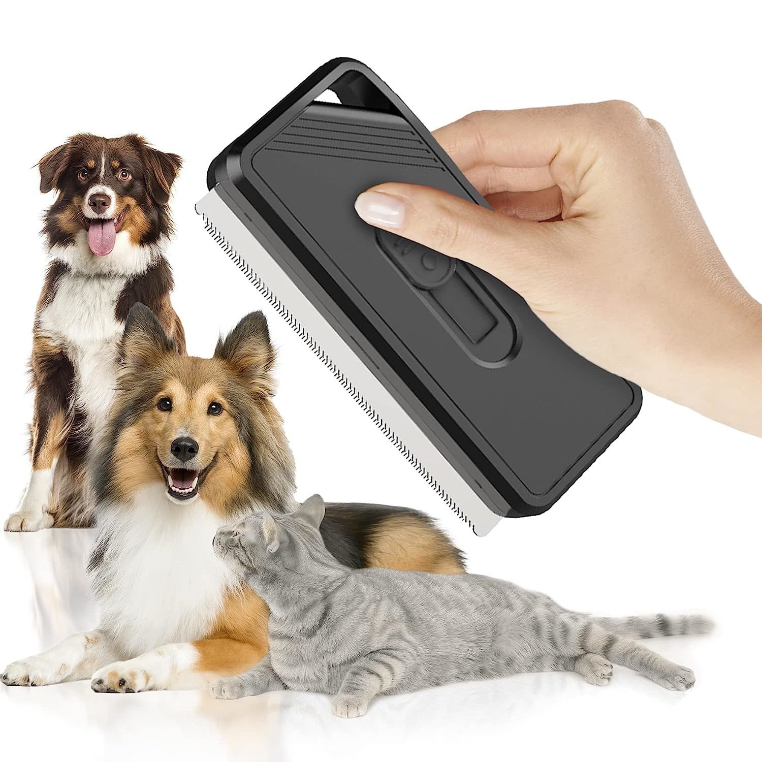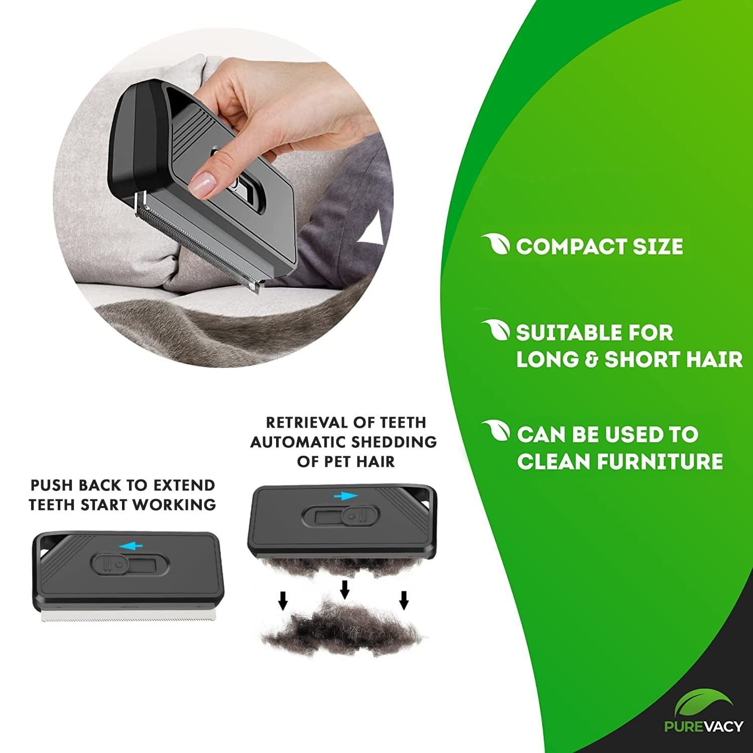 Self Cleaning Slicker Brush for PetsColor: Black.Material: Plastic; 304 Stainless Steel.Size: 5" x 2".Quantity: 1 pack.Slicker brush for dogs (large and small) is a universal brush not only for dogs; but also for cats and all pets with hair. Clever design of dogs brushes is easy and intuitive to use. Puppy brushes for shedding are made of high quality plastic. Wavy 304 stainless steel teeth of brush for dogs (long hair and short hair) will never rust.Slicker brush for poodles (and any other breed of dogs) has two modes of operation: removal of loose hair and deep cleaning are compatible with all types of hair. The self-cleaning function of the puppy shedding brush is activated by pressing the button. Portable dog slicker brush (large and small pets) has a compact size that allows you to keep it with you even in your pocket.Slick brush for dogs and cats has two unique rows of wavy teeth. Slicker brush for long hair dogs painlessly removes only dry; damaged hair.HACK THE LIFE: You can use our slicker brush (dog) for any pets with hair (even horses). Also dog slicker brushes can help you clean furniture; blankets; carpets in your home from pet hair.