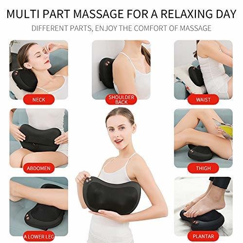 1.Neck and Shoulder Stress Relief:This shiatsu deep kneading massage pillow with an ergonomic shape fits body curves snugly for cozy massage on the neck, lower and upper back, abdomen, calves, thighs and more, efficient to relieve aches, knots, tension and stress.